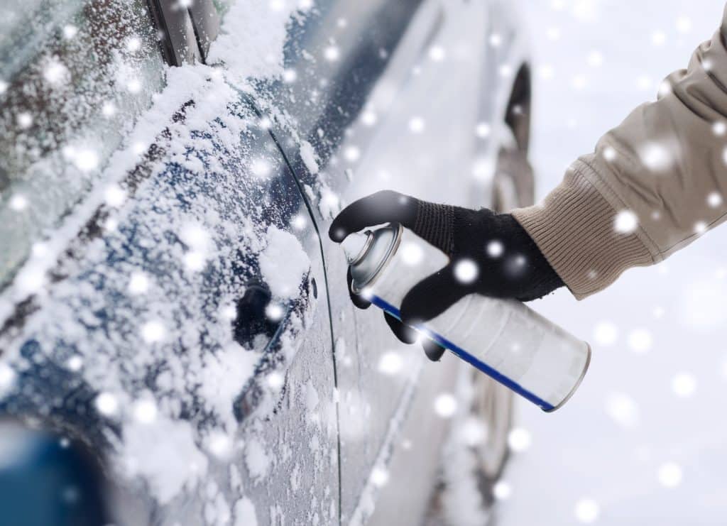 将除冰器放在离车门建议的距离处。将除冰剂喷入锁芯。等待几分钟,然后小心地转动钥匙。